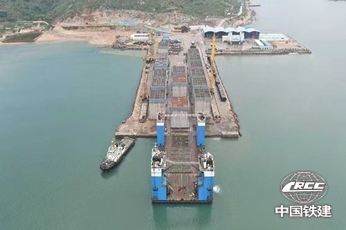 該項目共需預制安裝沉箱32個。單個沉箱長18.27米,寬17米,高17.7米,重約2500噸,是重力式碼頭施工的關鍵結構。開工以來,項目部全面實施精細化管理,從施工方案科學預控、氣象水文精準把控、設備工藝創(chuàng)新升級及施工管理精細優(yōu)化等多維度發(fā)力,成功實現(xiàn)了安全生產(chǎn)前提下沉箱出運安裝的“特快閃送”,鑄就了響亮的“鐵建港航速度”。