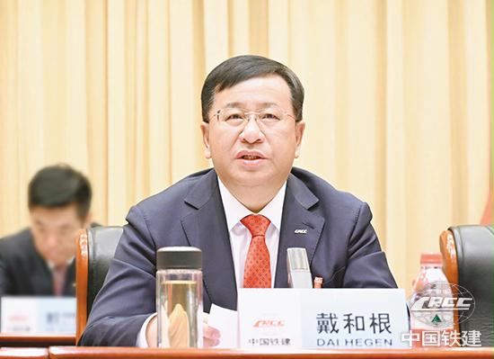 中國鐵建黨委書記、董事長戴和根作題為《堅(jiān)定信心 迎難而上 為建設(shè)世界一流現(xiàn)代化企業(yè)團(tuán)結(jié)奮斗》的報(bào)告(肖永順 攝)